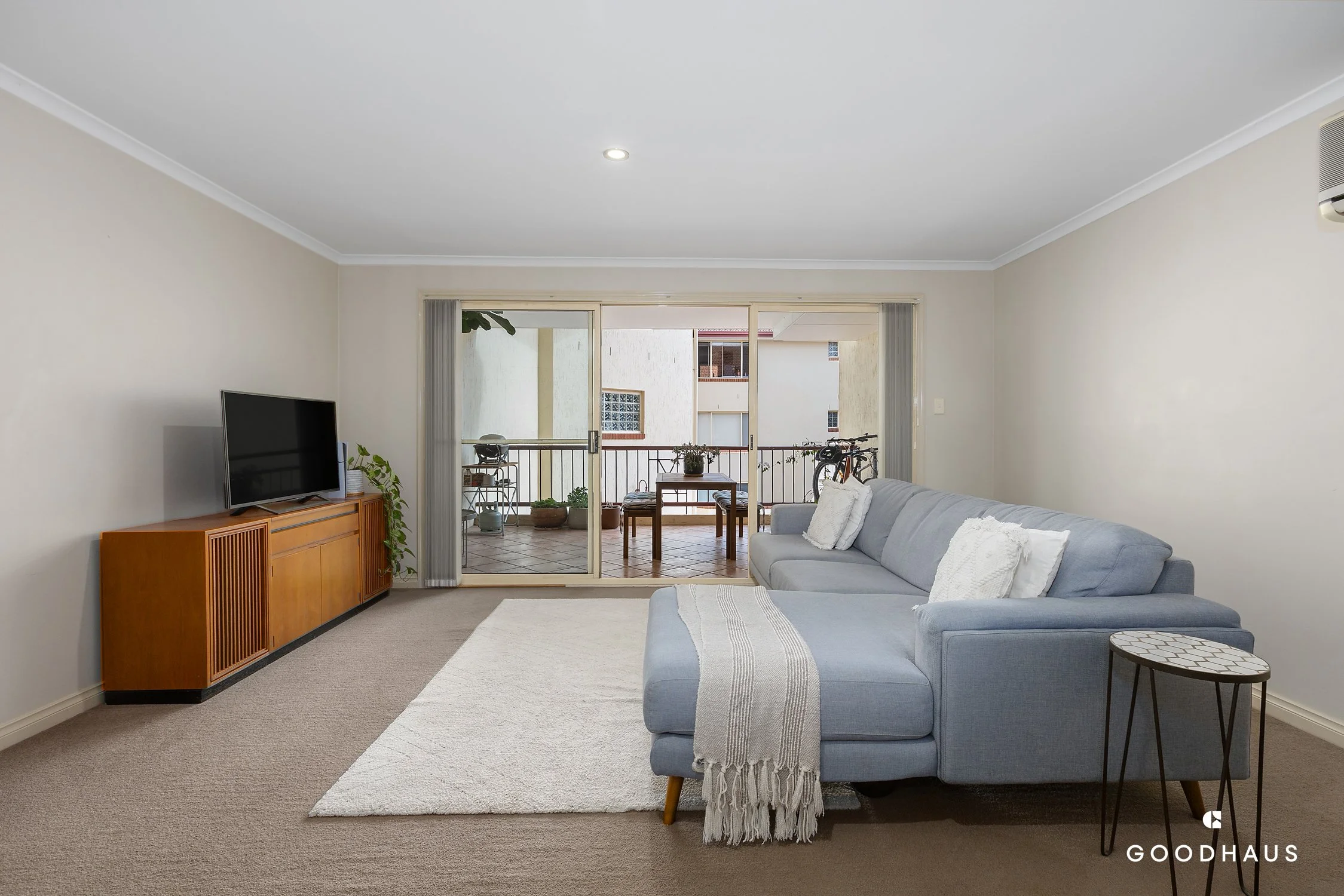 The living spaces are impressively sized. The kitchen includes electric cooking, brand-new dishwasher and ample bench space, while the open plan dining and living room seamlessly connect outdoors to an undercover balcony. From there, a few steps lead down to a large courtyard.